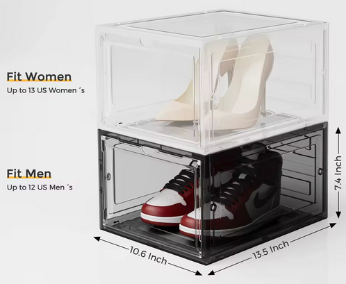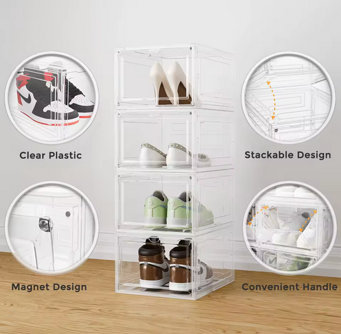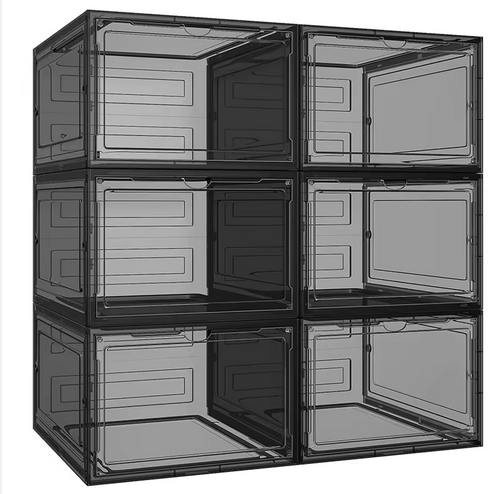 Stackable plastic sneaker boxes to optimize your space.